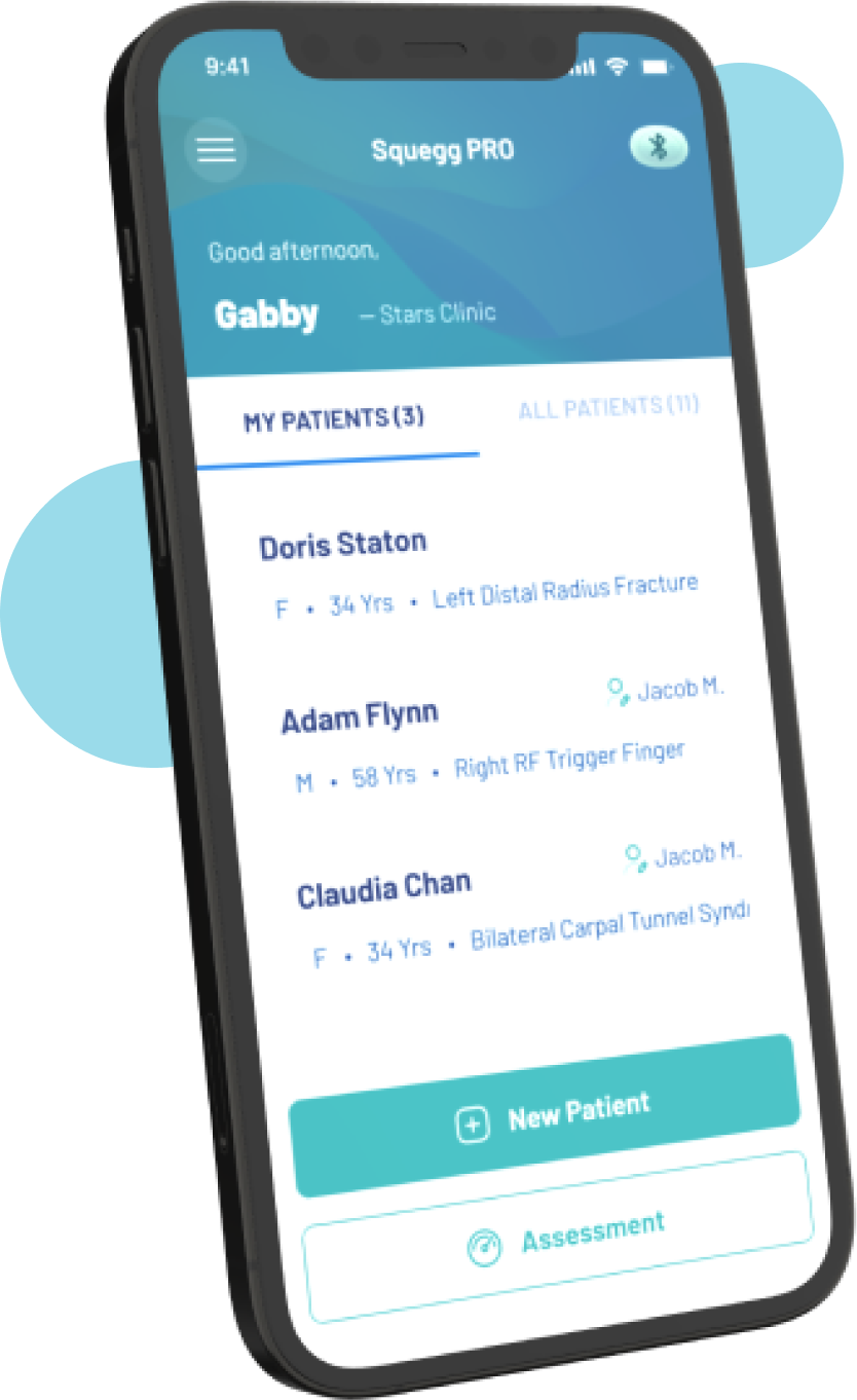 Create and assign home exercise programs. Patients can access their programs via the user Squegg app, while clinicians oversee progress through Squegg PRO.
