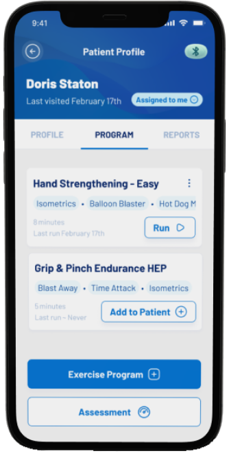Create & deliver customized therapy programs. Set specific parameters such as resistance, frequency, etc. for each game or activity added to the program.